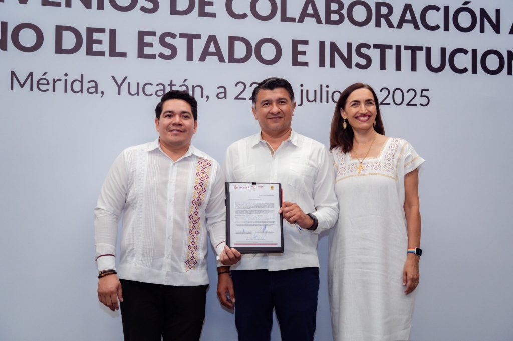 En la firma de convenios estuvieron presentes Aimeé Alejandra Trujeque Ávila, subsecretaria de Recursos Humanos; Alfredo Teyer Mercado, director general Jurídico; y Rogelio Armando Cuanalo Rosales, director general de la Unidad de Asesores, así como representantes de las instituciones educativas signantes.