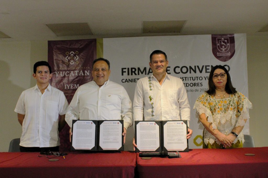 Mérida, Yucatán, a 18 de julio de 2025.- Con el objetivo de fortalecer las capacidades técnicas, de innovación y transformación digital del ecosistema emprendedor en el estado, el Instituto Yucateco de Emprendedores (IYEM) y la Cámara Nacional de la Industria Electrónica, de Telecomunicaciones y Tecnologías de la Información (Canieti), Sede Sureste, firmaron un convenio de colaboración.