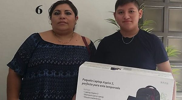 Los equipos de cómputo fueron entregados a Génesis Estefanía Centeno Tuz, quien cursa el tercer grado en la escuela telesecundaria Escudo Nacional de la comisaria de Santa María Acú, Halachó y a Cristian Isair Torres Noh del barrio de San Román, Ticul.