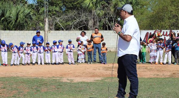 Ticul, Yucatán- En el marco de la inauguración del XI primer campeonato de la Liga de Béisbol Infantil y Juvenil “W.Valle” y del campo “Club Mejía” en Ticul, el Diputado Federal por el V Distrito, Juan José Canul Pérez destacó que incentivar el deporte entre la niñez permite fortalecer los lazos familiares y de sano esparcimiento en la sociedad yucateca.