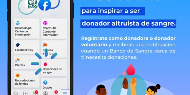 Como parte de las acciones por promover la donación altruista de sangre, el Instituto Mexicano del Seguro Social (IMSS) se unió a través de 152 Bancos de Sangre en todo el país a la herramienta digital de Facebook ‘Donaciones de sangre’, que permite a los usuarios de esta red social recibir notificaciones sobre oportunidades de donación cercanas a su ubicación.