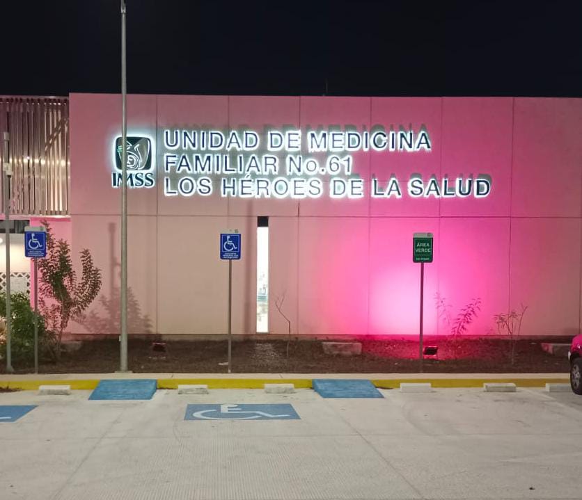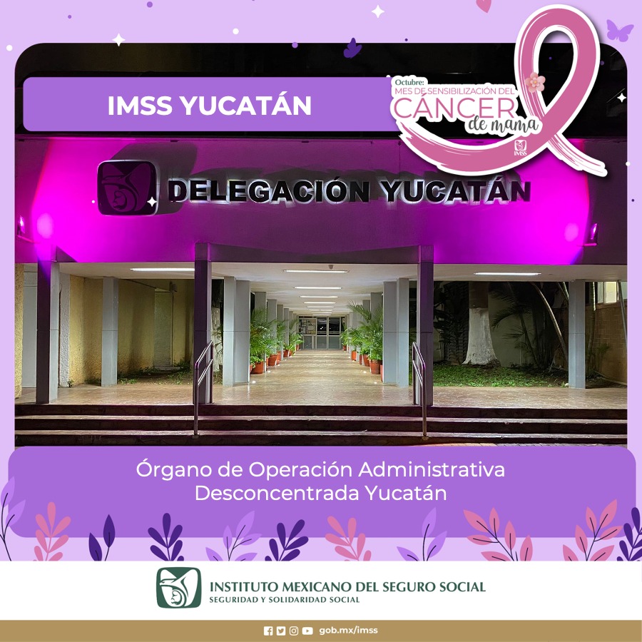 Mérida, Yucatán, 5 de octubre de 2022.- En el marco del Mes de Sensibilización del Cáncer de Mama, el Instituto Mexicano del Seguro Social (IMSS) en Yucatán se pinta de rosa e ilumina sus unidades médicas y administrativas, con el objetivo de promover la concientización, prevención, detección temprana y tratamiento del cáncer de mama.