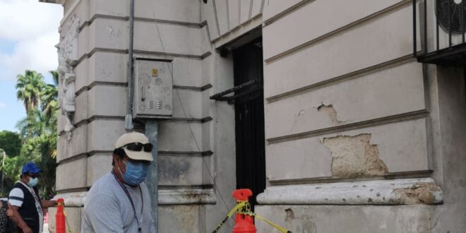 MÉRIDA.- La mañana de este lunes 9 de agosto, personal del Instituto Nacional de Antropología e Historia (INAH) y de Protección Civil del estado y del municipio de Mérida realizaron un recorrido al Ateneo Penínsular para verificar el estado que guarda el inmueble.