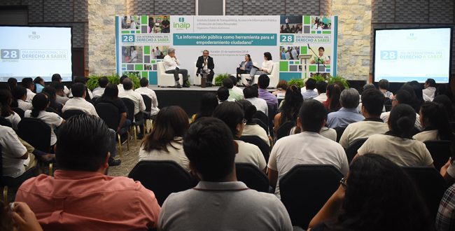 Ante un aforo de aproximadamente 350 personas, se llevó a cabo este día el conversatorio “La información pública como herramienta para el empoderamiento ciudadano”, convocado por el Instituto Estatal de Transparencia, Acceso a la Información Pública y Protección de Datos Personales, Inaip Yucatán, en el marco de las Jornadas del Derecho a Saber 2018.