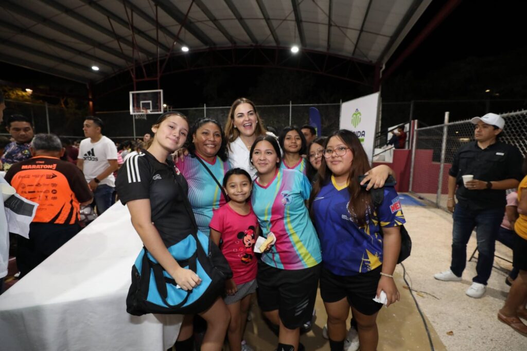 En el fraccionamiento Pacabtún, señaló que además de la renovada cancha en el parque de “El pez volador” próximamente se estarán entregando otros espacios rehabilitados en la Unidad Morelos, colonias Mercedes Barrera y Santa Rosa, y se brindará apoyo para la instalación de techumbres que protejan a las y los usuarios del sol, garantizando mejores condiciones para la práctica deportiva y la convivencia vecinal.