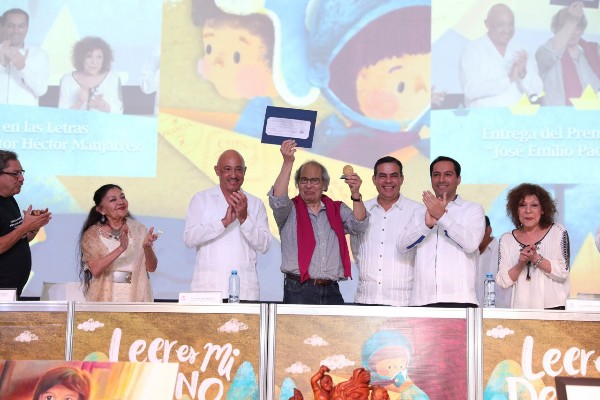 Durante la ceremonia, el titular del Poder Ejecutivo, junto con José de Jesús Williams, rector de la Universidad Autónoma de Yucatán (UADY), institución organizadora de la Filey, entregó el Premio Excelencia en las Letras “José Emilio Pacheco” al escritor Héctor Manjarrez