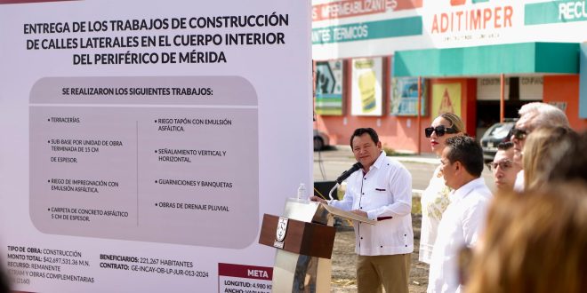 · El Mandatario entregó los trabajos de construcción de calles laterales en el cuerpo interior del Periférico de la capital yucateca. – con esta entrega, reafirmamos nuestro compromiso de gobernar con visión, responsabilidad y un profundo respeto por las necesidades de nuestra gente