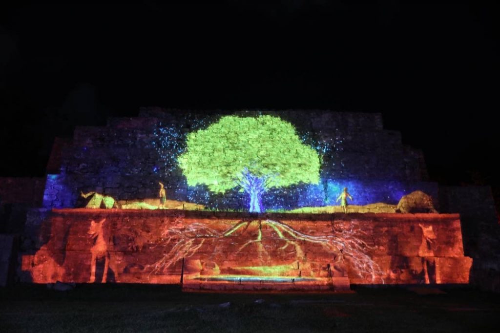 Mérida, Yucatán, 15 de octubre de 2022.- Yucatán suma a su oferta un nuevo producto turístico para la llegada de más visitantes, luego de que el Gobernador Mauricio Vila Dosal inauguró el videomapping “Pasos de luz” en la zona arqueológica Dzibilchaltún, un espectáculo que, a través de tecnología de luces y sonido, impulsa y promueve la belleza y el esplendor artístico y cultural de la región maya.