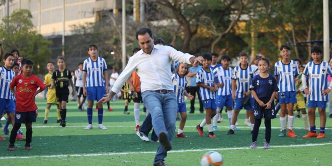 La Super Liga Gobernador 2024 tendrá como escenario las renovadas y modernizadas canchas de fútbol del Complejo Deportivo Kukulcán que entregó recientemente el Gobernador, con lo que ahora deportistas y gente de la zona cuentan con instalaciones de primer nivel, renovadas y modernas para practicar este deporte.
