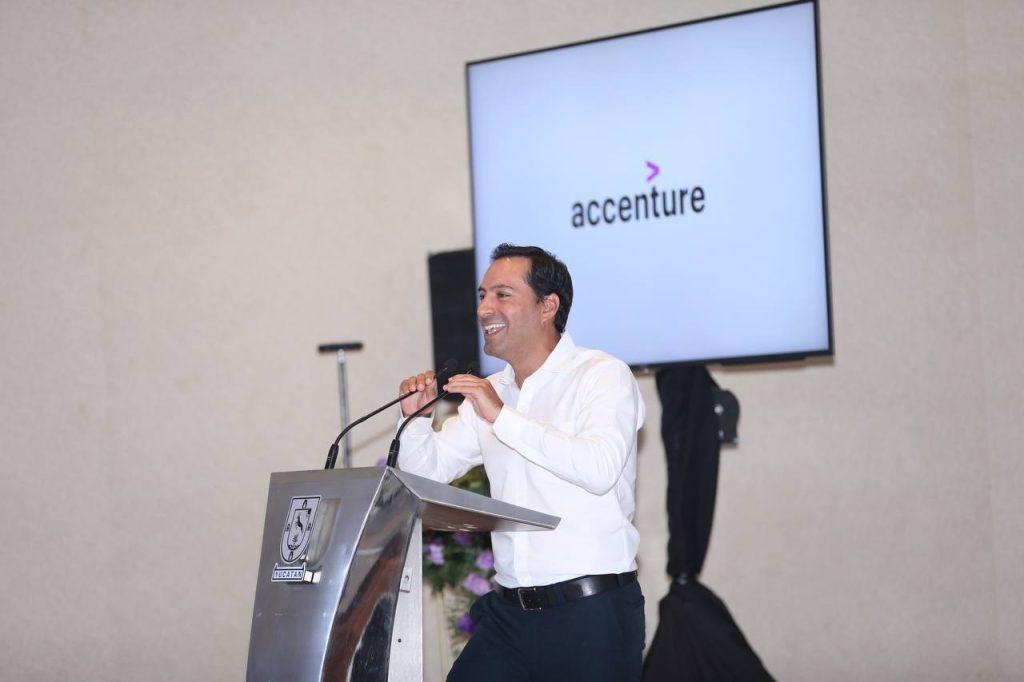 En su mensaje, el Gobernador resaltó que la función de su administración ha sido poder crear más empleos mejor pagados; y que todas las personas, con base a sus aptitudes, puedan tener la oportunidad de poderse superar, por ello, se trabaja en la preparación de los yucatecos para que puedan aprovechar la llegada de empresas como Accenture que están en busca de nuevos talentos.