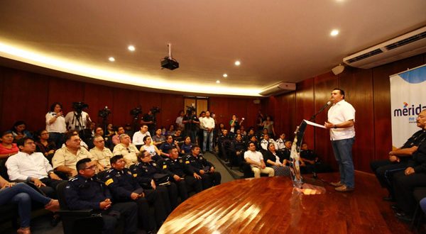 Mérida, 1 de abril de 2019. La actualización y capacitación constante de todos los involucrados en el tema de seguridad permiten al Ayuntamiento de Mérida mantener a la ciudad como un referente en la materia a nivel nacional, afirmó el alcalde Renán Barrera Concha.