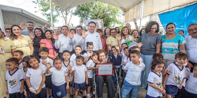 Hoy rendimos homenaje a la maestra Effy Luz Vázquez López, cuya vida es un legado de sabiduría y compromiso con la formación de generaciones enteras. Este preescolar no es solo un edificio; representa el compromiso y dedicación de una comunidad educativa comprometida con el crecimiento y desarrollo integral de nuestros niños, señaló.