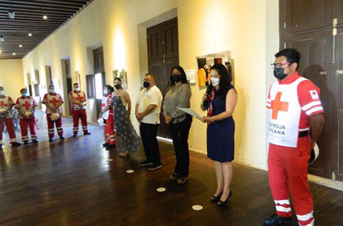 En su turno, la Directora de Cultura del municipio Patricia Rosado González entregó a la presidenta de la Cruz Roja un reconocimiento por la labor humanitaria que realizan con el apoyo de los 13 paramédicos, las tres bases y las tres ambulancias ubicadas en Chelem, Chuburná y Chicxulub.
