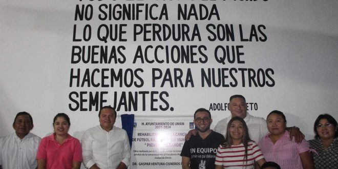 Umán, Yucatán a 28 de Febrero de 2024.- El municipio de Umán estrena cancha de fútbol completamente renovada que fue inaugurada por el alcalde, Dr. Gaspar Ventura Cisneros Polanco y que cuenta con instalaciones de primer nivel para el desarrollo de los deportistas.