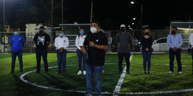 Kanasín, Yucatán a 06 de diciembre del 2021.- El alcalde Edwin Bojórquez Ramírez cumple con uno de los compromisos más esperados por los pobladores del fraccionamiento Villas del Oriente e inaugura un nuevo Parque Infantil y una cancha de fútbol 7 totalmente renovada.