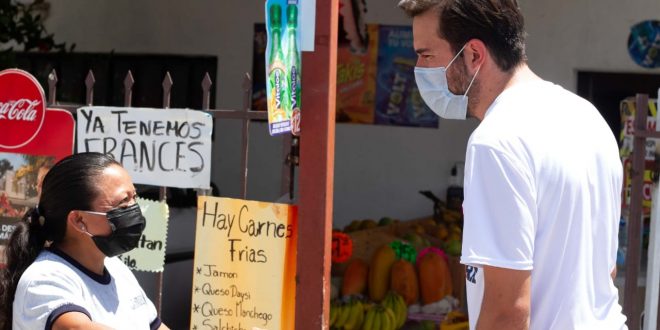 Durante sus caminatas por la zona, al platicar con las y los colonos, el Candidato a diputado expresó que es indispensable respaldar a las tienditas, fruterías, loncherías, tiendas de regalos y otros giros, para impulsar a las familias a superar los retos económicos que ha dejado la pandemia.