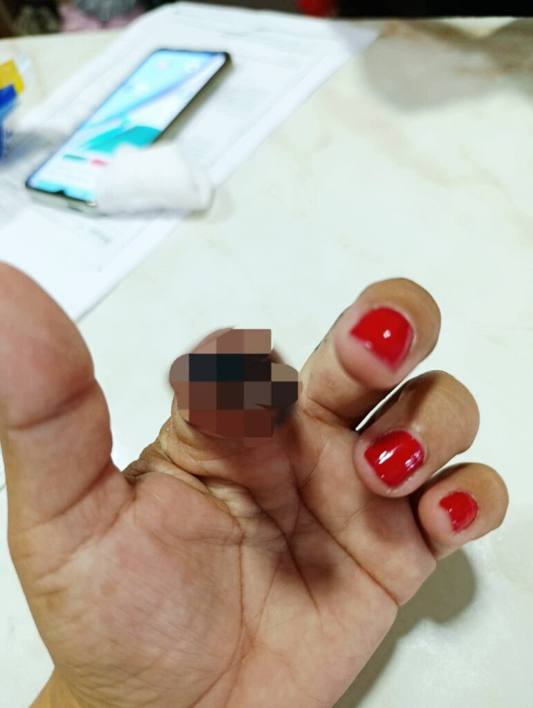 Según su testimonio, la presunta agresora acudió hasta su domicilio cuando ella apenas tenía 20 días de haber dado a luz. En ese contexto de vulnerabilidad, se habría desatado una agresión física violenta que culminó cuando la atacante le mordió la mano con tal fuerza que le arrancó un dedo.