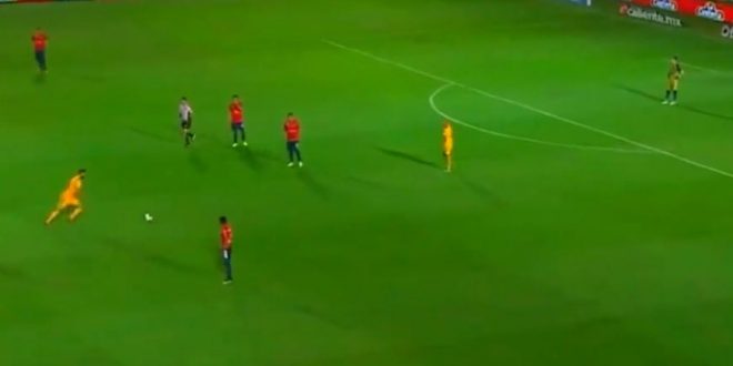 Antes del minuto ocho y ya disputando el balón, Eduardo Vargas, marcó el tercer gol.