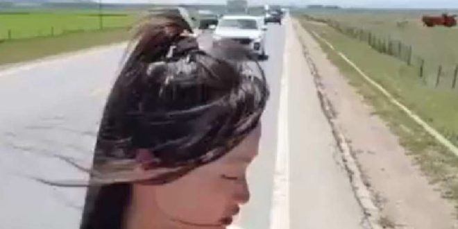 En el video, que ya suma millones de reproducciones, se observa a la influencer china muy cerca de la orilla de la autopista de doble vía, mientras acomodaba la cámara en la que transmitía en vivo.