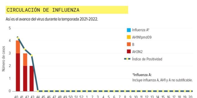 Este año, el último informe semanal de la temporada de influenza estacional 2021-2022 destaca que se han reportado 86 mil 110 casos sospechosos, de los cuales, nueve se han confirmado: siete son casos positivos a influenza AH3N2 y 2 de influenza B.