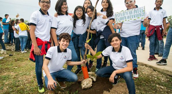 Mérida, Yucatán, 2 de noviembre de 2019.- Estudiantes de la Preparatoria Estatal número 11 “Francisco Rogelio Rivero Alvarado” plantaron los primeros ejemplares de árboles de ornato y frutales, en las inmediaciones de su colegio, como parte de la estrategia de reforestación que promueve la Secretaría de Educación del Gobierno del Estado (Segey) y que da cumplimiento al compromiso del Gobernador Mauricio Vila Dosal de fomentar el cuidado del entorno.