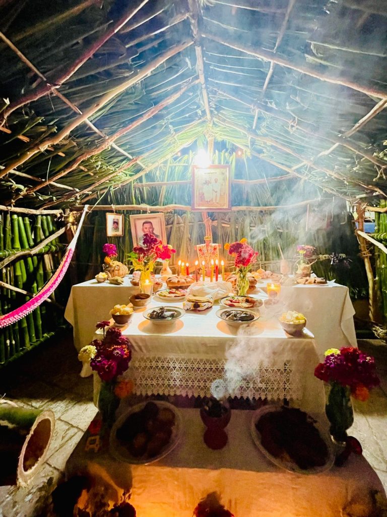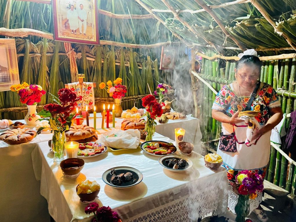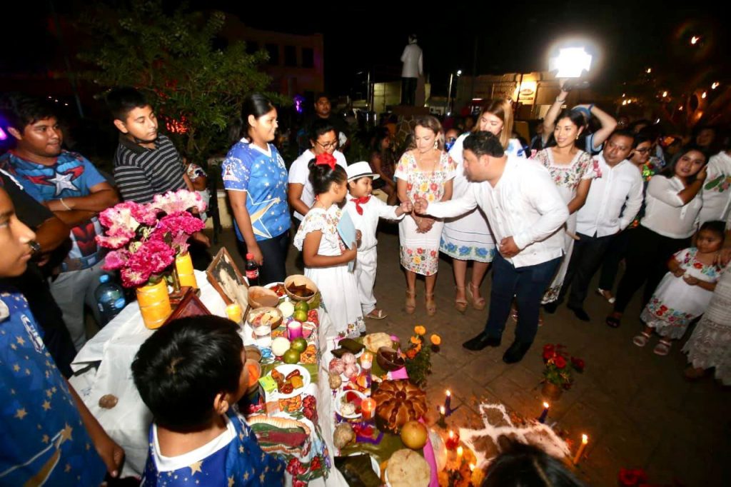 Kanasín, Yucatán a 29 de octubre de 2022.- Chocolate caliente, pan de muerto, altares, flores y mucha tradición, fueron algunos de los componentes que estuvieron presentes en el arranque la noche de ayer viernes de la Semana Cultural 2022 “Hanal Pixán”, evento que inauguró el alcalde Edwin Bojórquez Ramírez.
