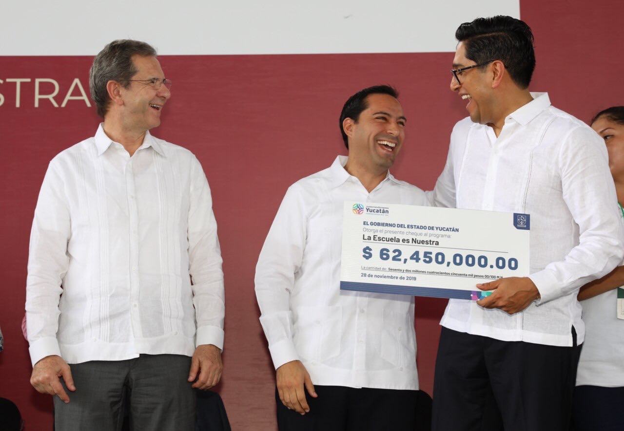En ese marco, Vila Dosal entregó la aportación por parte del Gobierno del Estado al programa “La Escuela es Nuestra”, que fue de 62.4 millones de pesos.