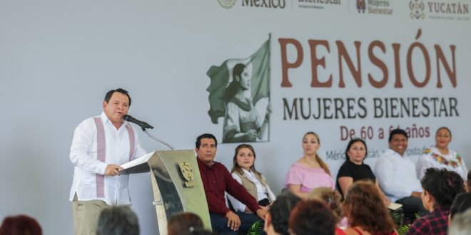 Mérida Yucatán, a 5 de agosto de 2025.- Con el objetivo de saldar una deuda histórica y dignificar la vida de miles de mujeres, el Gobernador Joaquín Díaz Mena encabezó el inicio de la incorporación al programa Pensión Mujeres Bienestar, que otorga un apoyo bimestral de 3,000 pesos a mujeres de 60 a 64 años como reconocimiento a su trabajo y compromiso con sus familias.