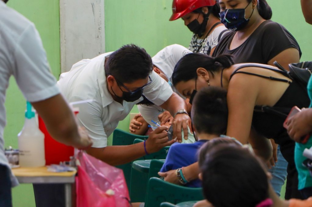 Progreso, 26 de julio de 2022.- El H. Ayuntamiento que preside el alcalde Julián Zacarías Curi, en coordinación con la Secretaría de Salud del Estado, dio inicio a la etapa de vacunación contra el Coronavirus a menores de 5 a 11 años de edad de la localidad.