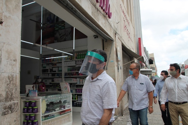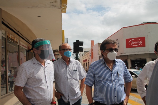 Acompañado de los presidentes de las cámaras Nacional de la Industria Restaurantera y Alimentos Condimentados (Canirac), de la Industria del Vestido (Canaive), Coparmex, CMIC, AMMEJ, Roberto G. Cantón Barros, Fernando Muñoz Carrillo, Fernando Ponce Díaz, Raúl Aguilar Baquiero y María Eugenia Marín Vázquez, constataron el movimiento de este primer día de reactivación en esta zona de la ciudad, donde se emplean más de 60 mil personas en los diversos negocios de giros diferentes.