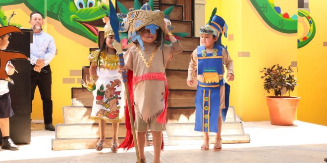 En el marco de las festividades, los estudiantes de tercer año cautivaron con una representación del cuento maya “Kukulcán”, recreando la magia de la cultura maya con una impresionante pirámide de Chichén Itzá. También, alumnas y alumnos de segundo y primer año, deleitaron con fragmentos del poema “Mi Amigo el Libro”, compartiendo su amor por la lectura en cada palabra.