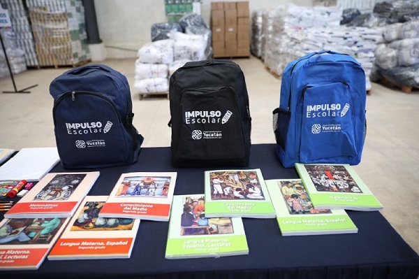 -Vila Dosal realizó el banderazo de salida de los primeros camiones que llevan esos artículos y libros de texto gratuitos en beneficio de estudiantes de escuelas públicas de primaria y secundaria de todo el estado, toda vez que el ciclo escolar en Yucatán comenzará en la modalidad a distancia el lunes 24 de agosto.