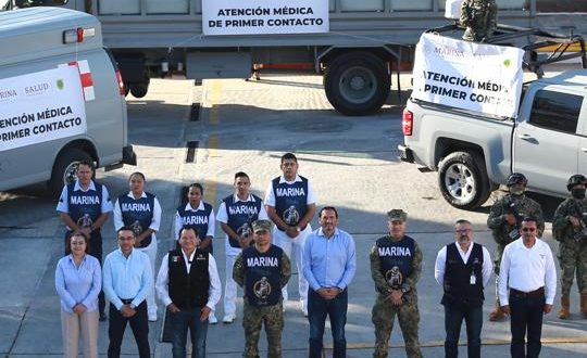 YUCALPETÉN, Yuc., 15 de febrero 2023.- Banderazo de inicio a las “Jornadas de Atención a la Salud Gratuita en Comunidades de Difícil Acceso” en la zona naval de la SEMAR en Yucalpetén, por instrucciones de nuestro Presidente Lic. Andrés Manuel López Obrador, la Secretaría de Marina en coordinación con la Secretaria del Bienestar, el Instituto Mexicano del Seguro Social y los Servicios de Salud del estado de Yucatán, realizarán estas acciones con el objetivo de acercar servicios de atención médica de primer contacto a personas que vivan en municipios colindantes con la costa yucateca. Informó el Delegado del Gobierno Federal en Yucatán Mtro. Joaquín Díaz Mena.