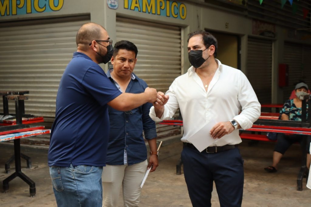 Zacarías Curi recorrió el Mercado Municipal, en donde platicó con los locatarios beneficiados que vieron con buenos ojos las obras que se llevarían a cabo, debido a que cambiaría la imagen de un lugar a donde acuden numerosos comensales. “Hace menos de un mes, en mi informe de resultados les conté sobre los proyectos que venían para el municipio, y uno de ellos era la remodelación del área de comidas del mercado municipal y hoy, acudo al banderazo de inicio y supervisión de esta obra que beneficiará a las y los progreseños” expresó el alcalde.