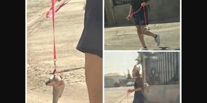En una escena que parecía sacada de una película de ficción, la tarde del sábado, un pez dorado “paseaba” por las inmediaciones de la plaza Nuevo Mexicali. No, el pez no se desplazaba por sí solo. Lo hacía dentro de una pecera transparente en ruedas, jalada por una joven que le había colocado, para añadir más surrealismo a la escena, una correa.