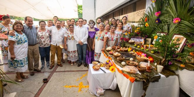 Mérida, Yucatán, a 31 de octubre de 2023.- La Secretaría de Educación del Gobierno del Gobierno del Estado de Yucatán (Segey), realizó su tradicional muestra de altares de “Janal Pixan” en cuyo marco se resaltaron los valores culturales de nuestros antepasados mayas y se rindió un tributo a grandes figuras del teatro regional, Héctor Herrera Álvarez “Cholo” y Wilberth Herrera Pérez, así como de docentes y personal educativo que han sido parte invaluable de la dependencia estatal.