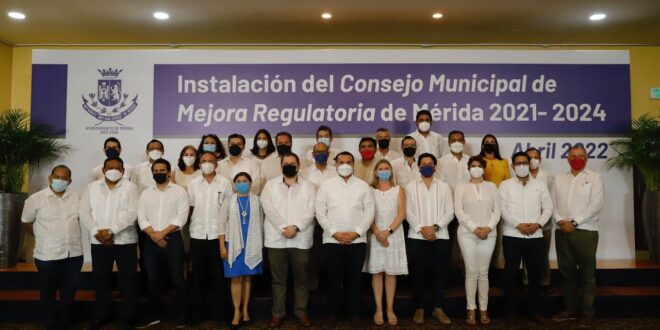 Mérida, Yucatán a 6 de abril de 2022.- El Ayuntamiento de Mérida instaló el Consejo Municipal de Mejora Regulatoria para continuar consolidando la gestión municipal con buenas prácticas e innovación en sus procesos y trámites, los cuales mantienen a la ciudad como ejemplo nacional e internacional en el tema de la simplificación administrativa para quienes quieren invertir en el Municipio.