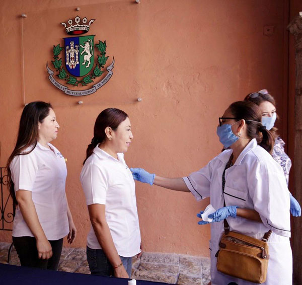Como se ha mencionado con anterioridad, por indicaciones del alcalde Renán Barrera Concha todas las oficinas y edificios administrativos están siendo atendidos por el departamento de Conservación del Ayuntamiento para que de manera periódica lleven a cabo la aplicación de cloro en todas las áreas.