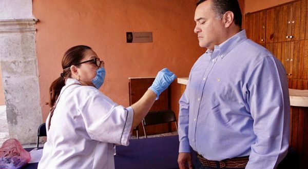 Mérida, 17 de marzo de 2020. Para garantizar la salud de las y los meridanos, así como de los trabajadores municipales, el alcalde Renán Barrera Concha reforzó acciones preventivas mediante la instalación de filtros de revisión en todos los accesos principales de los edificios municipales con el fin de contribuir a aminorar el desarrollo del Coronavirus mejor conocido como Covid-19.