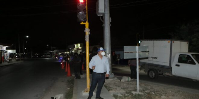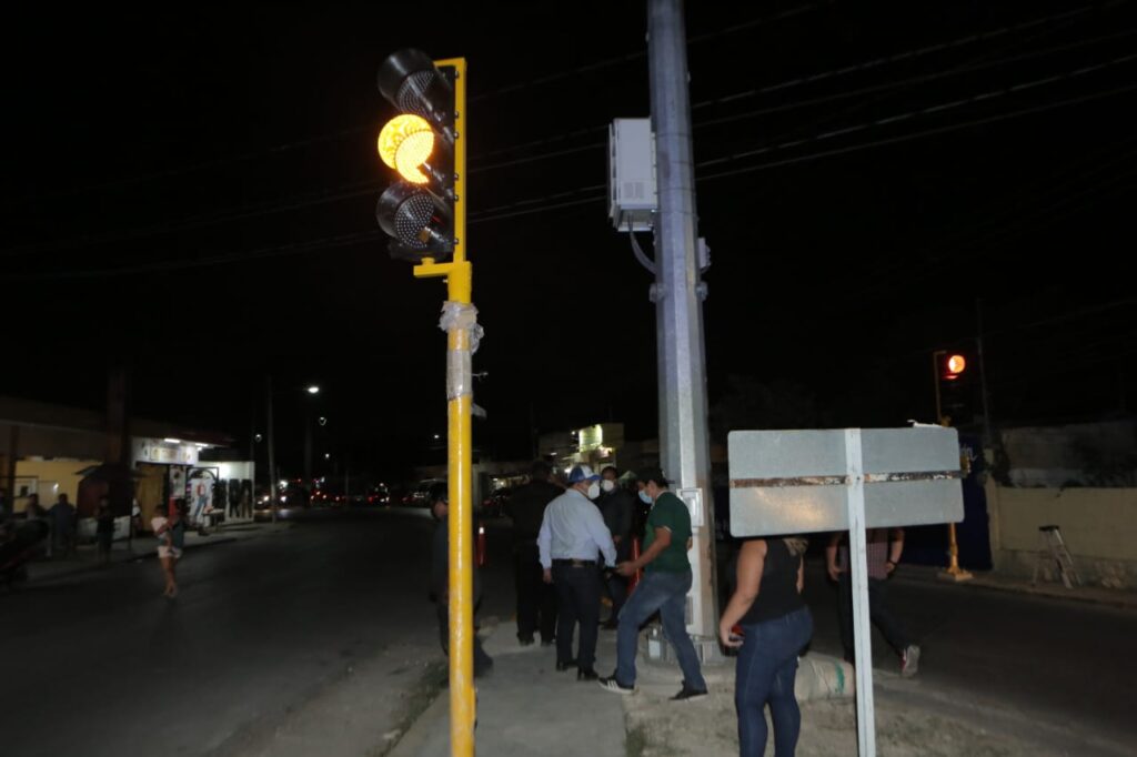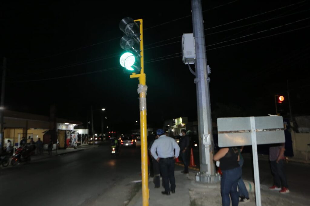Kanasín Yucatán a 12 de abril del 2022 – La noche de ayer 11 de abril, el alcalde Edwin Bojórquez Ramirez, en compañía del Director de Seguridad Pública de Kanasín Luciano Moo Arceo, realizaron la activación de 3 nuevos semáforos ubicados en la calle 19 por 21 y 21 por 14 del Centro, en el Instituto Mexicano del Seguro Social (IMSS).