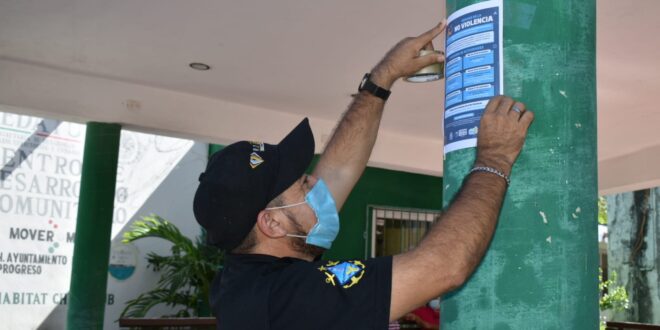 PROGRESO, Yuc., 17 de noviembre 2021.- En el marco del día de la eliminación de la violencia contra la mujer a conmemorarse el día 25, personal del Instituto Municipal de la Mujer (IMM) de Progreso colocó en puntos estratégicos de las comisarías de Flamboyanes, y los puertos de Chelem y Chicxulub el programa de actividades que se llevarán a cabo en la semana de la No violencia, esto del lunes 22 al sábado 27 de noviembre.