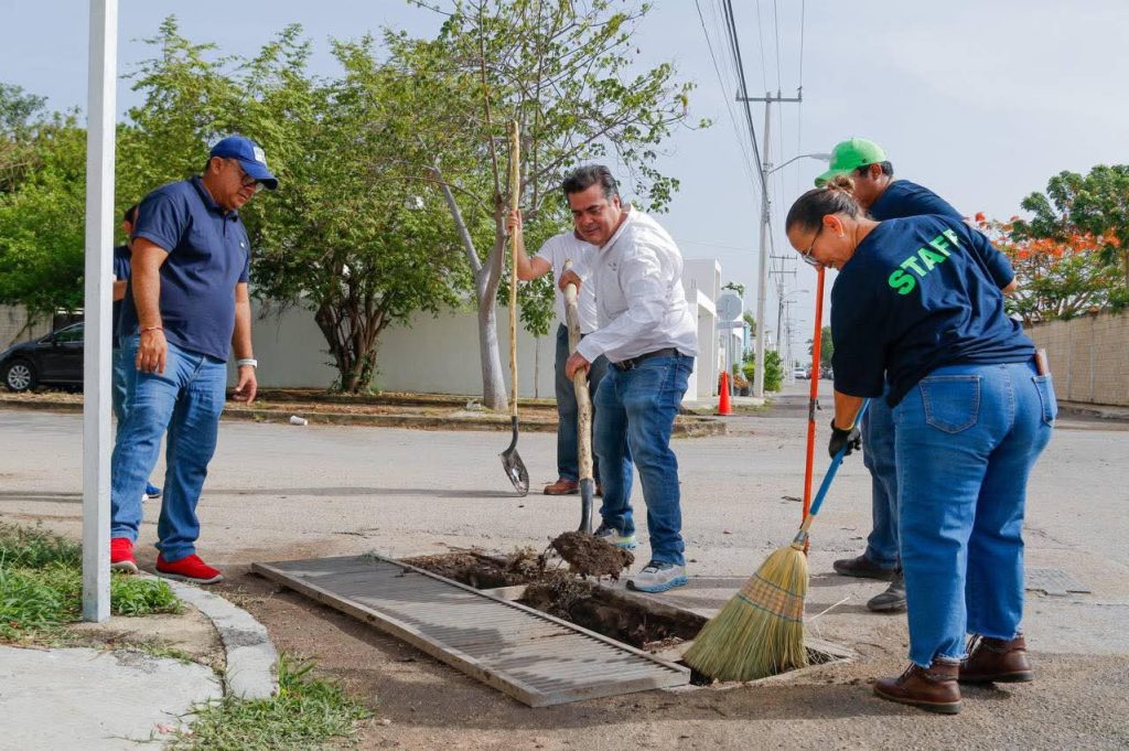 “Hasta el momento se ha dado mantenimiento a 2 mil 602 zanjas colectoras en colonias como San José Tecoh, San Antonio Xluch, Castilla Cámara, Las Américas, Vergel, Juan Pablo II, Residencial Pensiones, llegando a cada punto cardinal de la ciudad, con el despliegue de 706 colaboradores en brigadas de 14 direcciones municipales, coordinadas por Servicios Públicos para prevenir encharcamientos”, comentó la presidenta.