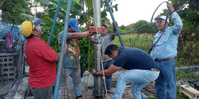 Umán, Yucatán a 14 de Noviembre de 2023.- Garantizando un servicio de agua potable de calidad, después de más de 20 años se realizó el cambio de una bomba sumergible, cableado eléctrico y de la tubería que se encontraba en mal estado en la planta de abastecimiento de la comisaría de Oxcum.