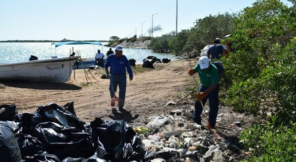 Desde la 8 de la mañana, personal de las dependencias de Turismo y Comercio; Servicios Públicos Municipales y Ecología; Pesca y Desarrollo Agropecuario, así como elementos de la Policía Ecológica, pescadores que forman parte del programa PET, un grupo de residentes extranjeros y la operadora de tours “Yucatán Snook” se dieron cita para sanear dicha zona.