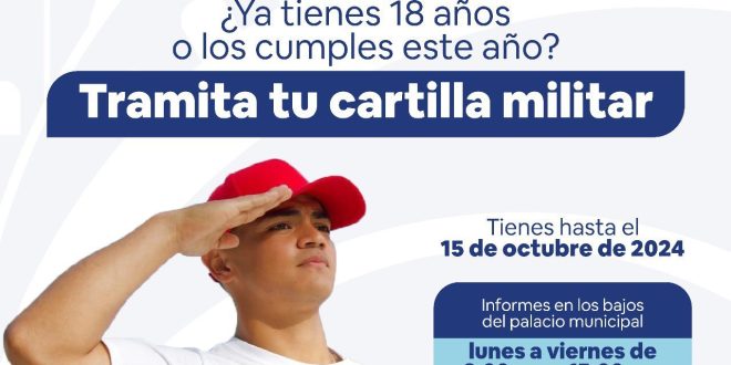 La fecha límite para el alistamiento es hasta el 15 de octubre por lo que se exhorta a los jóvenes a acercarse a la Junta Municipal de Reclutamiento, ubicada en los bajos del Palacio Municipal, para realizar este trámite gratuito.