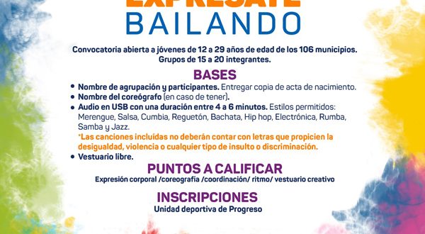 Cabe mencionar que “Exprésate Bailando” es organizado por el Centro Estatal de Prevención Social del Delito y Participación Ciudadana (Cepredey), en coordinación con la Subsecretaría de la Juventud de la Secretaría de Desarrollo Social (Sedesol) y el Ayuntamiento de Progreso