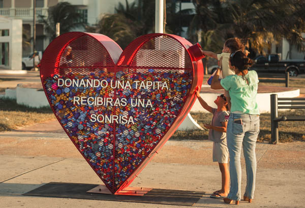 Progreso. – La estructura de un corazón rojo, instalado en el parque de La Paz del malecón tradicional “Romeo Frías Bobadilla”, tiene un fin: ayudar a niños con cáncer y, al mismo tiempo, contribuir al medio ambiente.