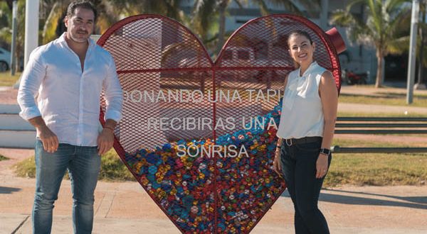 Progreso. – La estructura de un corazón rojo, instalado en el parque de La Paz del malecón tradicional “Romeo Frías Bobadilla”, tiene un fin: ayudar a niños con cáncer y, al mismo tiempo, contribuir al medio ambiente.