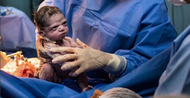 El momento fue capturado por el fotógrafo Rodrigo Kunstmann quien reveló que en el momento del parto no se percató de la expresión de la pequeña, sino que se dio cuenta, luego de revisar el material fotográfico.