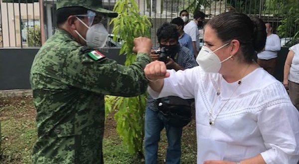 La funcionara dijo que la representación del ISSSTE en Yucatán recibió la visita del Coronel de Infantería Gustavo Caratachea Esparza, Comandante del 11 batallón de Infantería de la zona 32 militar en el homenaje que se realiza diariamente en la Institución con un contingente de 16 elementos, 4 vehículos y una ambulancia con personal dispuesto.